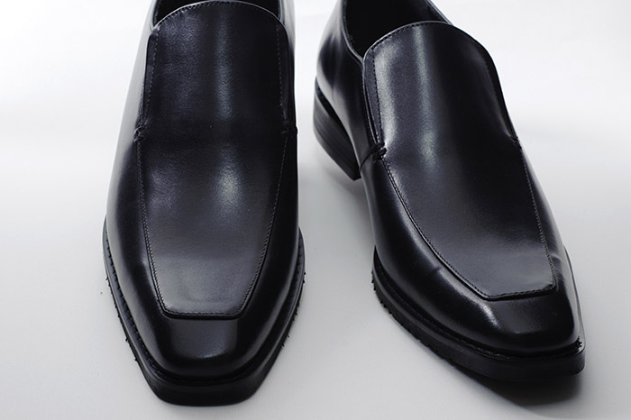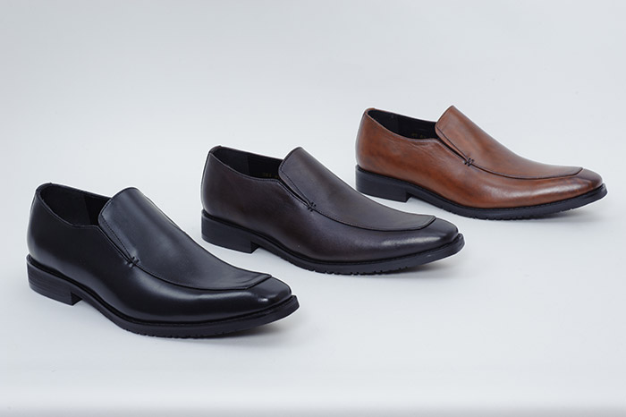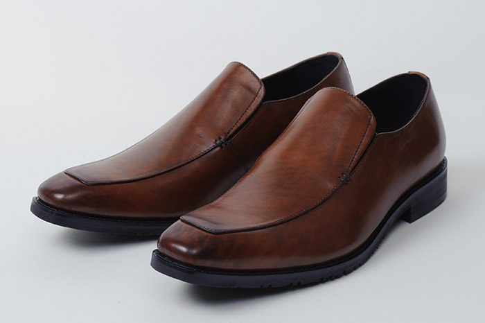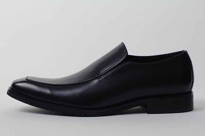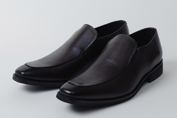 紐やバックルを使わず、ローファーやタッセルといった飾りを省いたシンプルなルックスは、フォーマルからカジュアルまで幅広くマッチ。甲の両サイドにあるゴムのスリッドが着脱をサポートします。