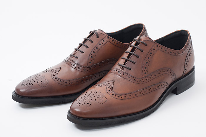ウィングチップ自体も装飾のひとつですが、メダリオン(つま先革の穴飾り)やブローグ(アッパーに施される大小の穴飾り)によりカントリー&ワーク調の印象が強く、フォーマルなシーンを避ければ比較的汎用性が有りデニム等の定番カジュアルとの相性も良いです。